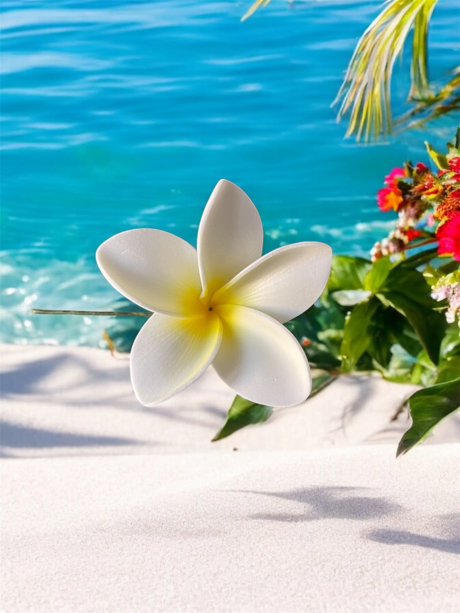 Fleur de Frangipanier artificielle : Fabriquées avec soin et attention aux détails, nos fleurs apportent une touche de charme tropical à votre coiffure, que ce soit pour une occasion spéciale ou simplement pour ajouter une note de style à votre quotidien.
