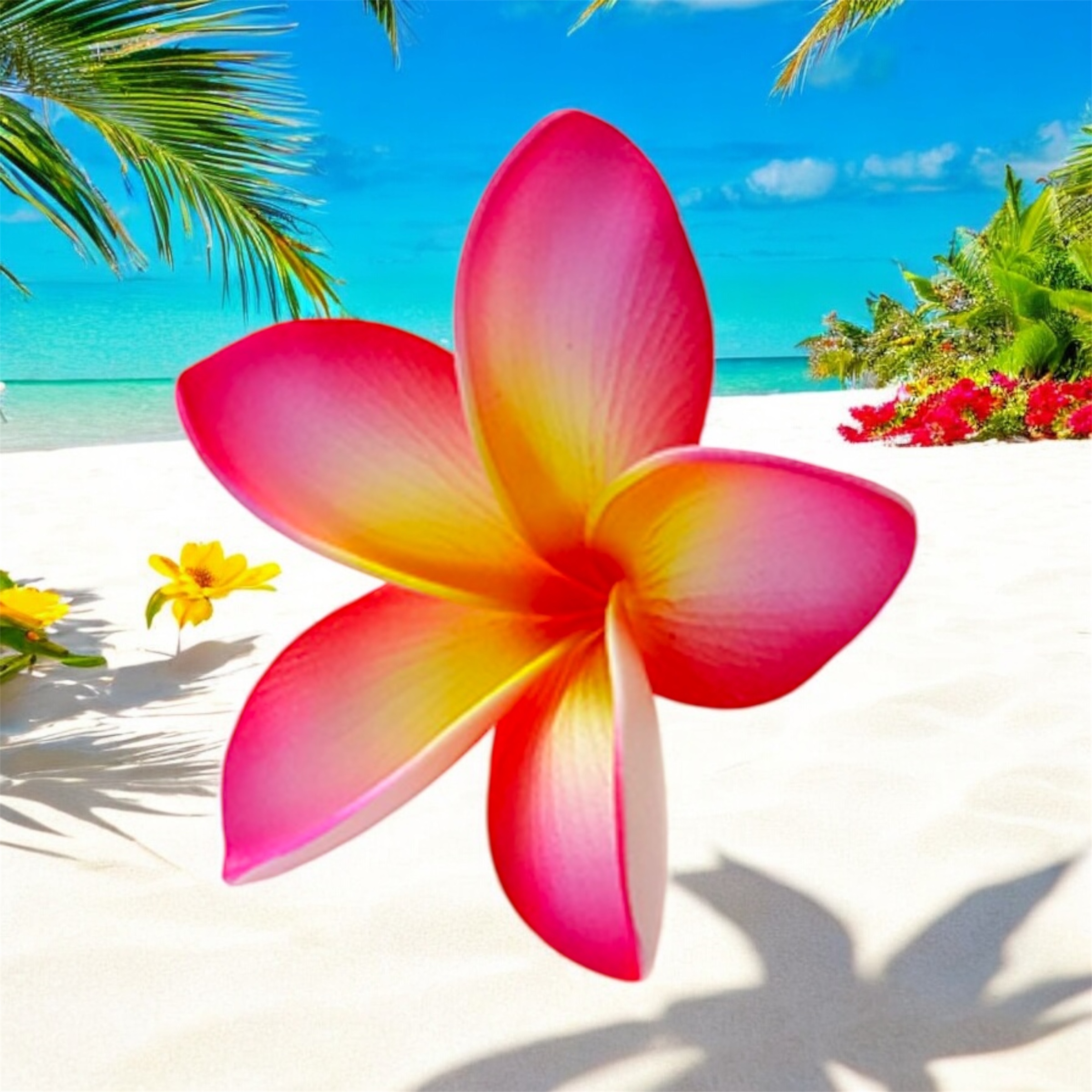 Fleur de Frangipanier artificielle : Fabriquées avec soin et attention aux détails, nos fleurs apportent une touche de charme tropical à votre coiffure, que ce soit pour une occasion spéciale ou simplement pour ajouter une note de style à votre quotidien.