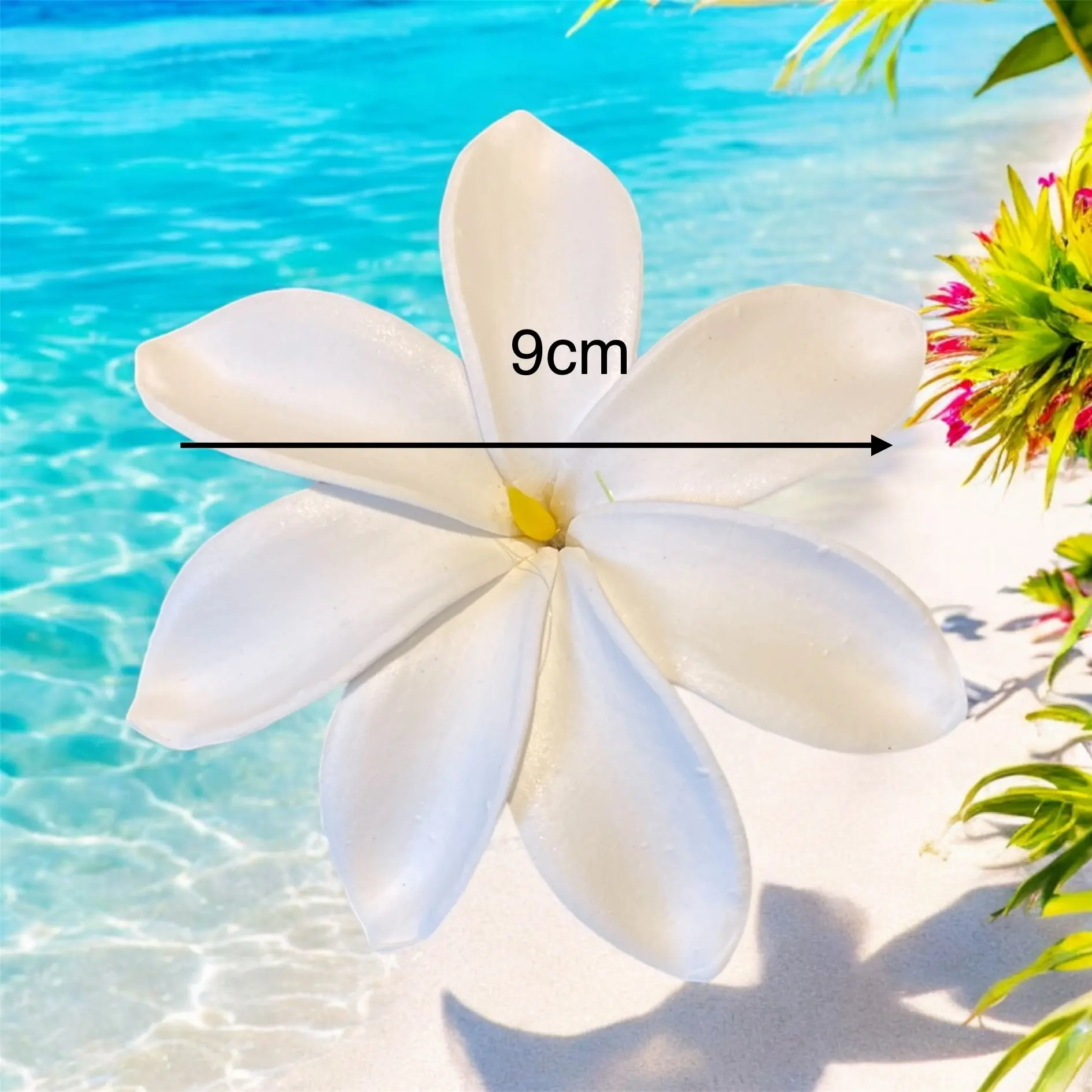Fleur de Tiare artificielle : Fabriquées avec soin et attention aux détails, nos fleurs apportent une touche de charme tropical à votre coiffure, que ce soit pour une occasion spéciale ou simplement pour ajouter une note de style à votre quotidien.