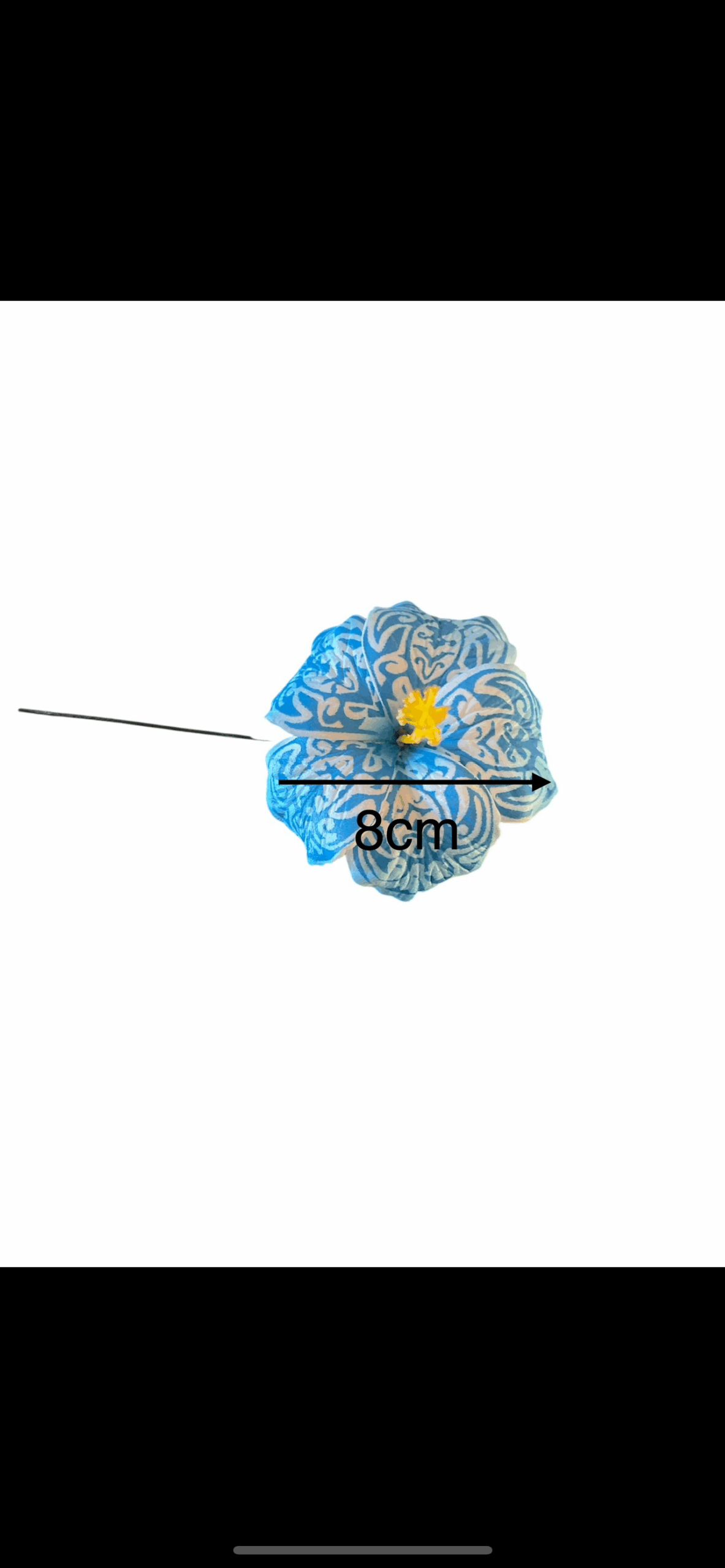 Fleurs d‘hibiscus tatoo bleu 8cm (tige)